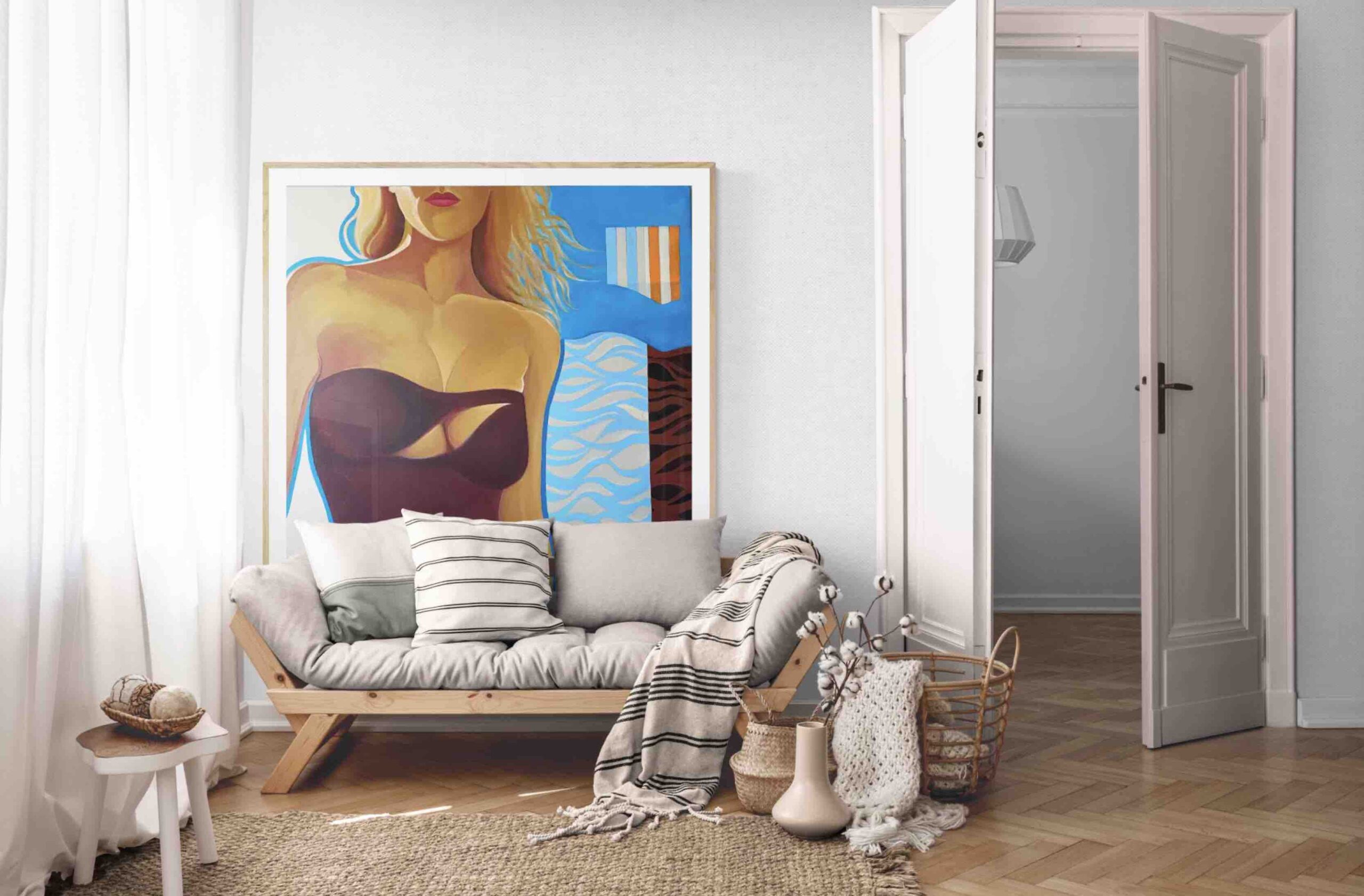 Femmes-puzzles, sensuelles et lointaines, madones modernes issues de supports à l’espace délimité et associés à la frivolité, la fugacité, l’immédiateté, elles deviennent, par l’alchimie de l’acrylique, intemporelles, sans référence spatiale.